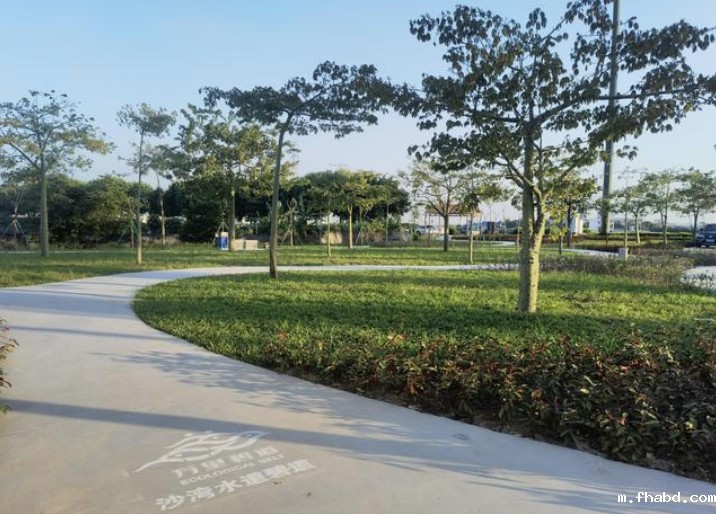 据介绍,沙湾水道全长26公里,河宽300-600m,水深5-6m,呈东西走向,东至顺德水道,西至莲花山水道。整条沙湾水道碧道全程是采用彩色透水混凝土路面铺装方式摊铺,整体性强,感观也舒服,全程融合了乡野型建设,将乡村振兴理念融入景观空间,注入能量,激活场地。